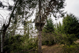 Elevated Treehouse Structure Surrounded by Dense Forest Foliage
