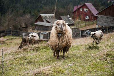 Rustic Landscape with Grazing Sheep and Farmhouse in Background