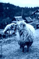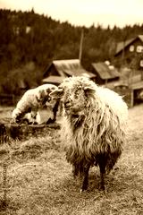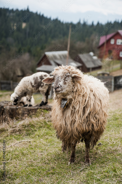 A Rustic Scene of Sheep Grazing in a Mountainous Landscape