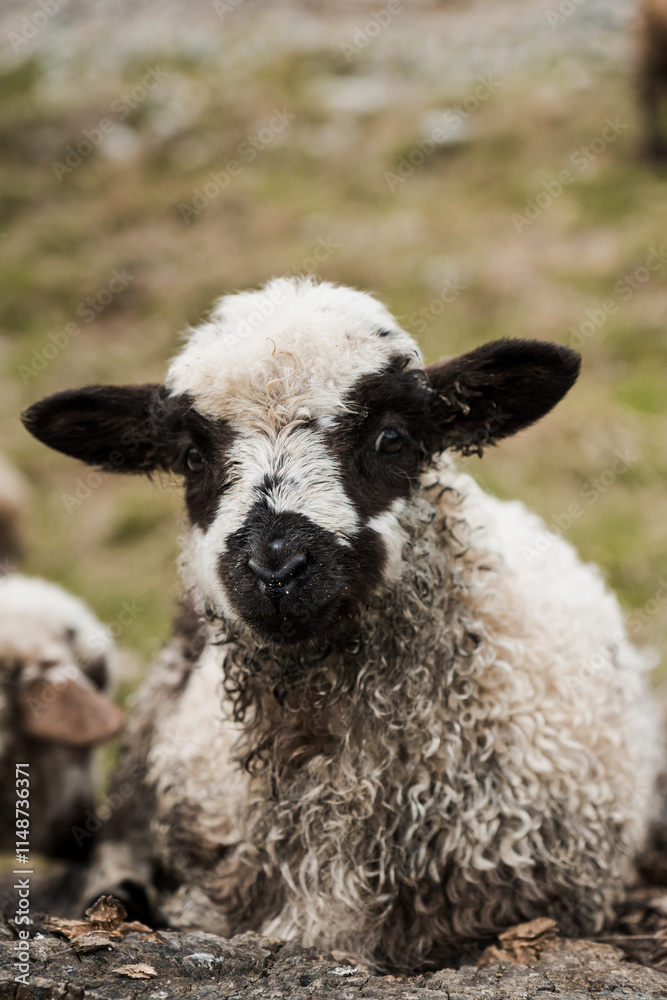 Adorable Close-Up of a Fluffy Sheep with Distinctive Face Pattern