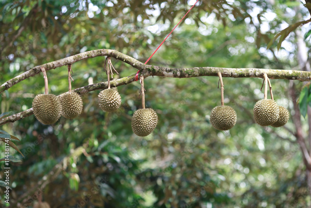 Fresh durian on durian tree