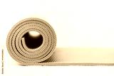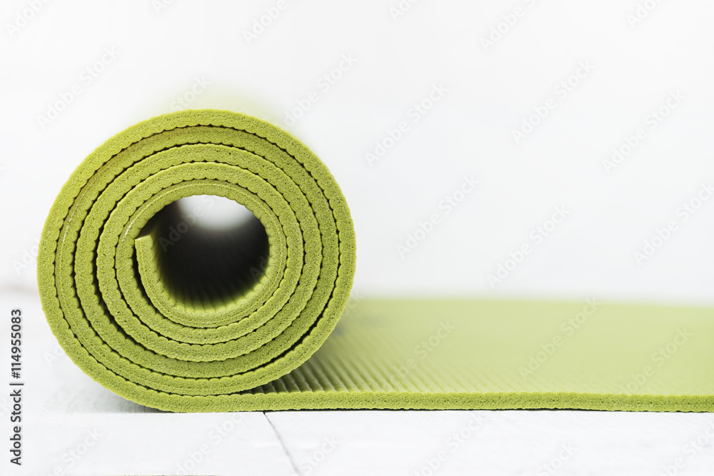 green yoga mat on white table