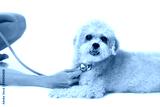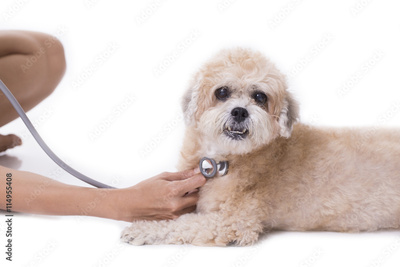 veterinarian with stethoscope examines a dog