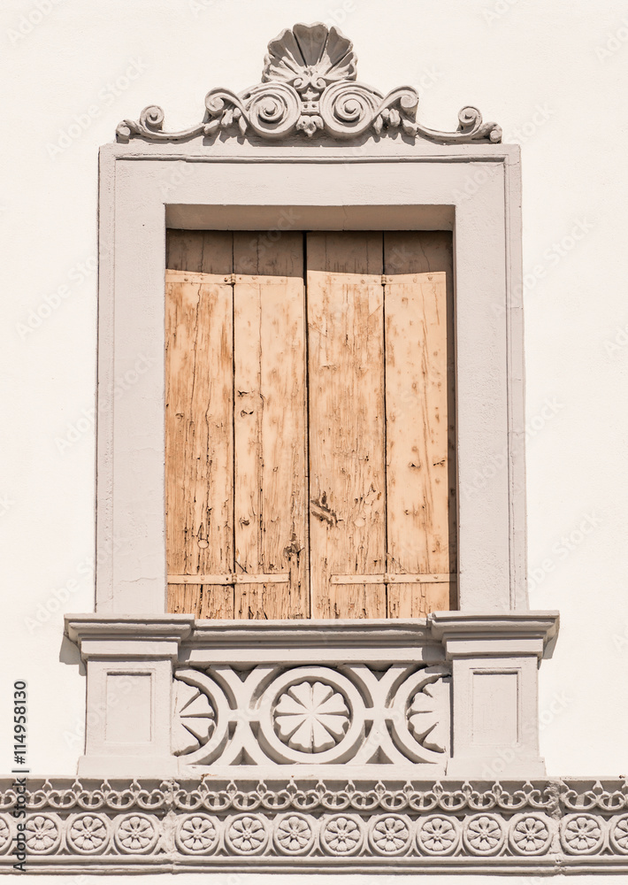 Decorated window of an Italian neoclassical villa.