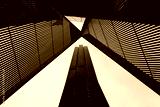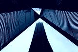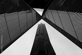 Melbourne CBD architecture - metal scultpture and skyscraper in black and white