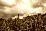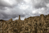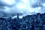 Beautiful stone mountains and valley. Rocks made of stone. Blue sky with clouds.