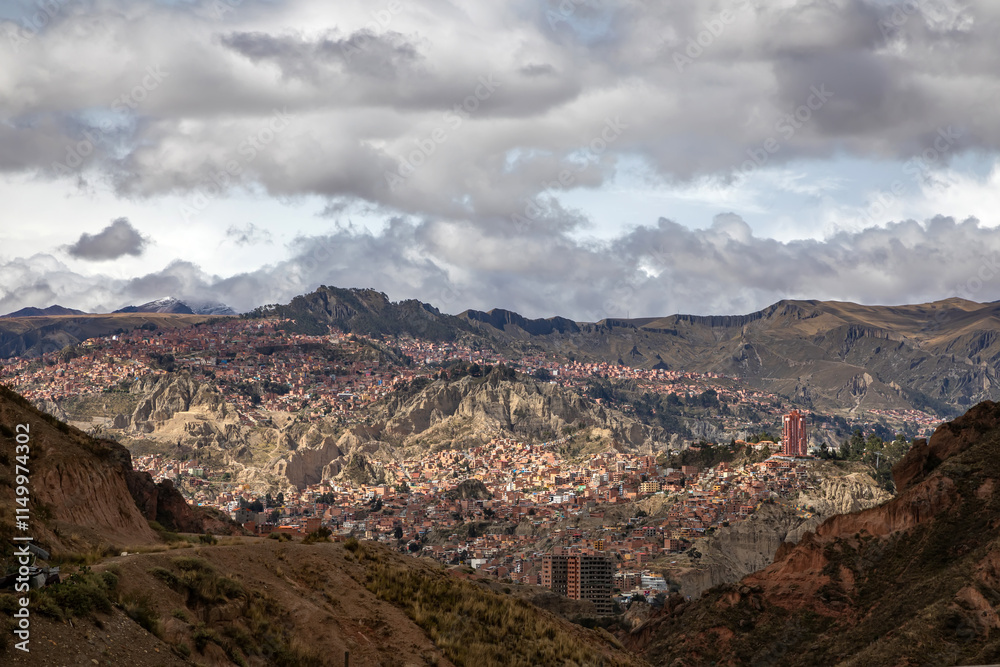 Beautiful stone mountains and valley. Rocks made of stone. Blue sky with clouds.