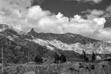 Beautiful stone mountains and valley. Rocks made of stone. Blue sky with clouds.