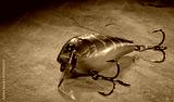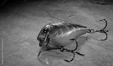 Orange fishing lure with copy space