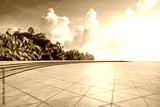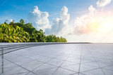Empty square floor and green forest with sky cloud natural landscape in summer. Outdoor square background.