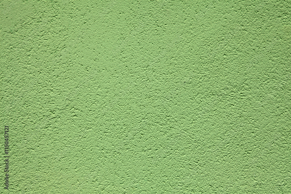 Green grainy wall texture, background. Decor of the cement textured coating. Structural silicone plaster, rough, uneven surface in light-green color. Modern exterior cladding of multi-story buildings