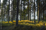 The bright sun is shining beautifully through the trees in the forest