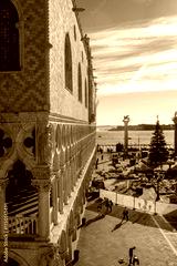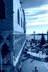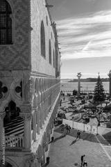 Workers carrying out construction work in the Piazzetta San Marco, next to the Doge's Palace, in Venice, Italy.