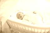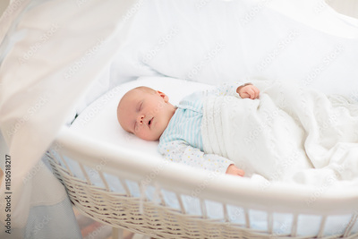 Cute newborn baby in white bed