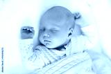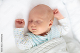 Cute newborn baby in white bed