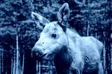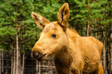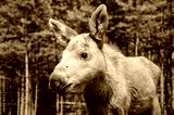 Cute baby moose in the forest.