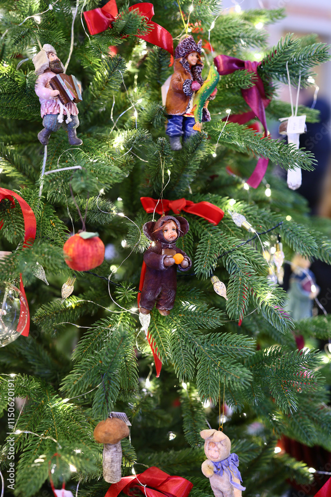 A Beautiful and Decorative Christmas Tree Adorned with Unique Ornaments and Baubles
