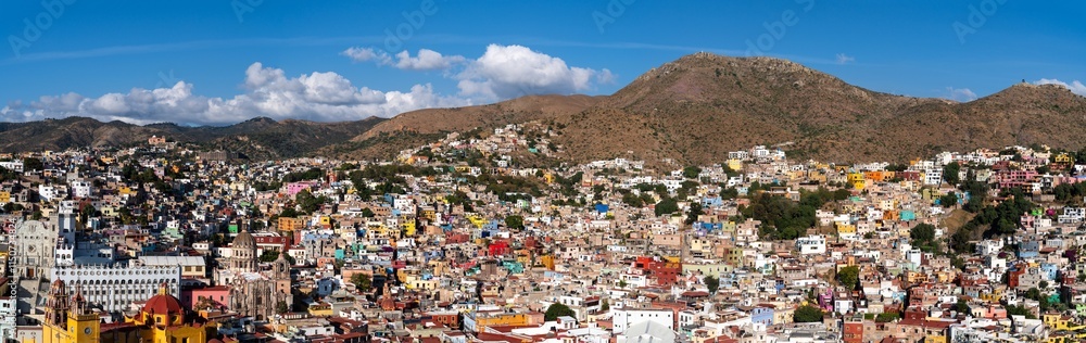 Wide angle cityscape of Guanajuato, Mexico at daytime