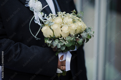 Elegant Wedding Bouquet of White Roses with Greenery Accents