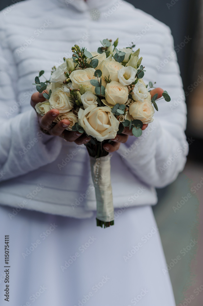 Elegant Bridal Bouquet with Soft White Roses and Greenery