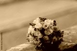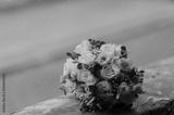 Elegant Bridal Bouquet with Gold Ring on Rustic Surface