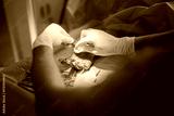Surgeon Uses Gauze to Stop Bleeding After Surgery Before Its Completion. Orthopedist performing arm surgery in the operating room