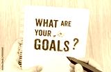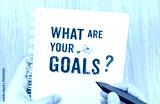What are your goal? word on white ring binder notebook with hand