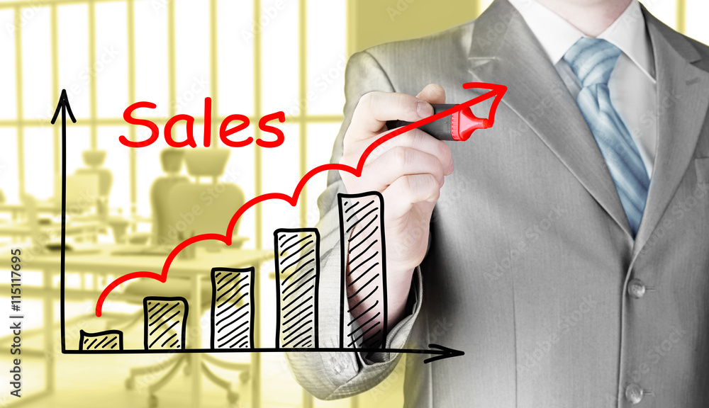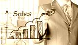 business man drawing graph of sales