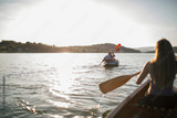 Family enjoying a kayaking trip on a peaceful lake
