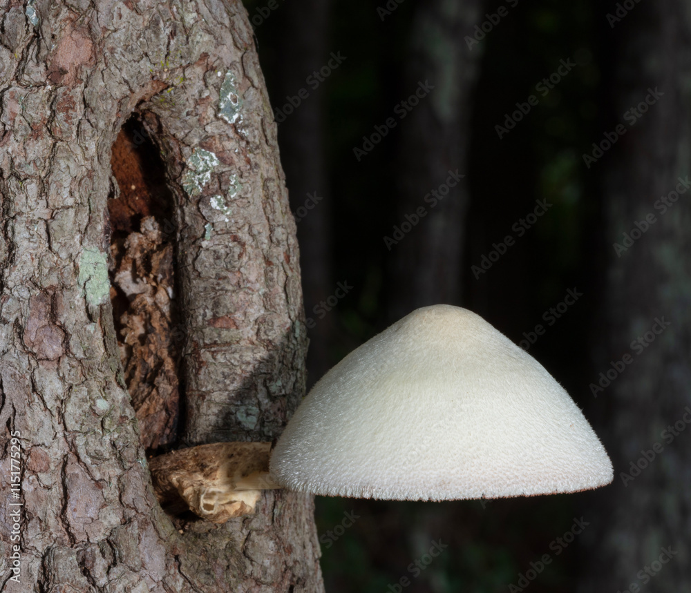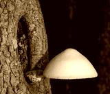 White mushroom high above the ground