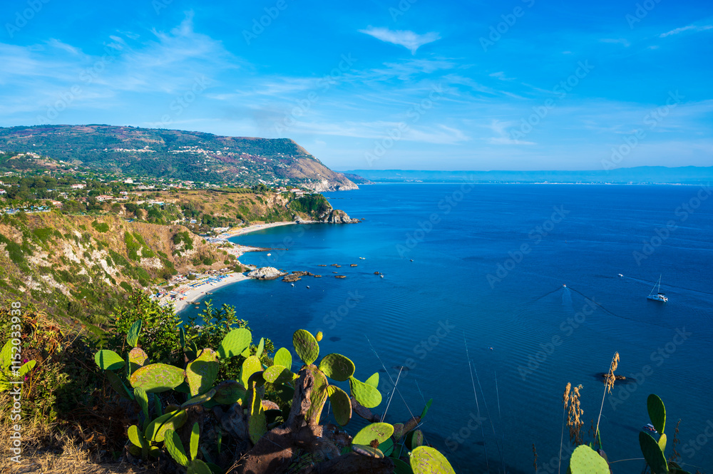 View of paradise Grotticelle Beach from Capo Vaticano Viewpoint - Beautiful landscape scenery near by Tropea, Calabria - Italy