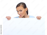 Cute woman holding an empty white board