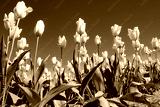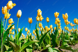 Garden Rows of Yellow Tulips Blooming