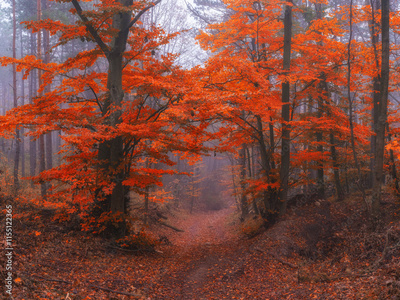 autumn forest in the mist