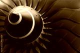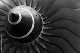 Turbine blades of turbo jet engine for passenger plane, aircraft concept, aviation and aerospace industry