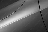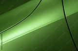 Surface of green sport sedan car, detail of metal hood, fender and door of vehicle bodywork