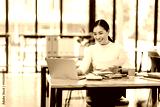 Young Asian woman doing financial accounting and taxes for a company Organizing account analysis reports Investment information Financial and tax system concepts