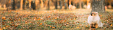 Young Red Puppy Pomeranian Spitz Puppy Dog Play Outdoor In Autumn Grass