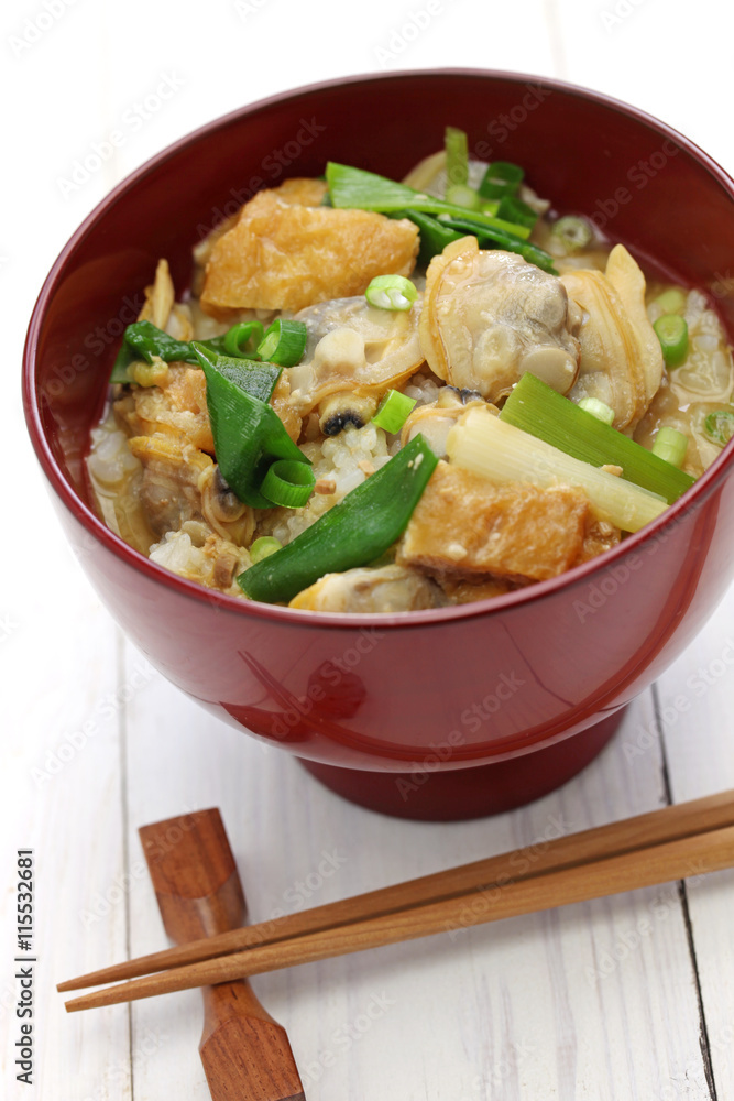 Fukagawadon, miso taste simmered clams rice bowl, Japanese traditional food