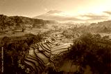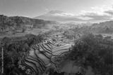 Aerial Landscape of lush Rice Fields and Mount Agung – Sustainable Agriculture in Bali Countryside - Tropical Nature