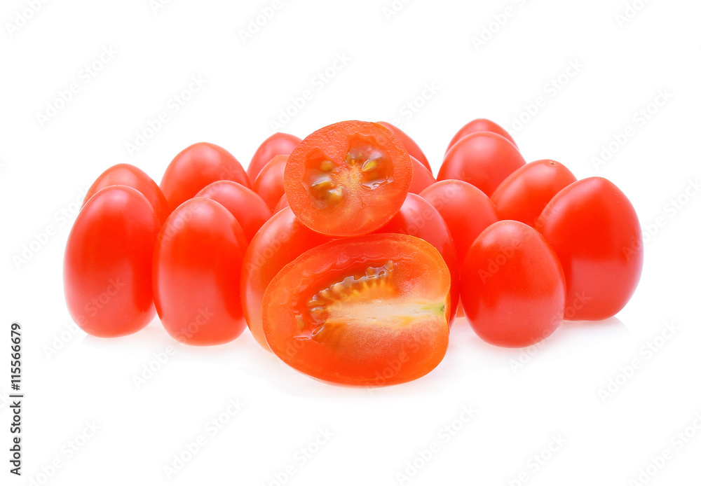 Grape or cherry tomatoes isolated on white background.