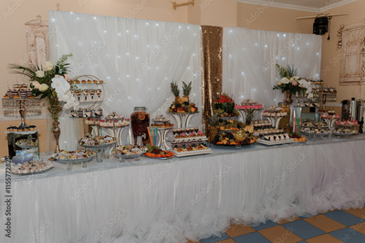 Elegant Dessert Table Display with Assorted Pastries and Sweets