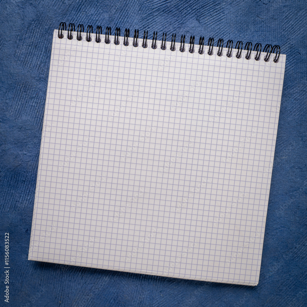blank spiral notebook with grid paper on textured art paper