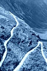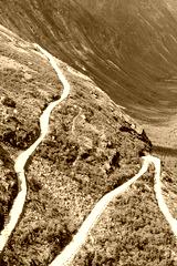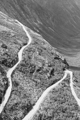 The Trollstigen road between the mountains, Norway. The most winding and dangerous road in Europe.