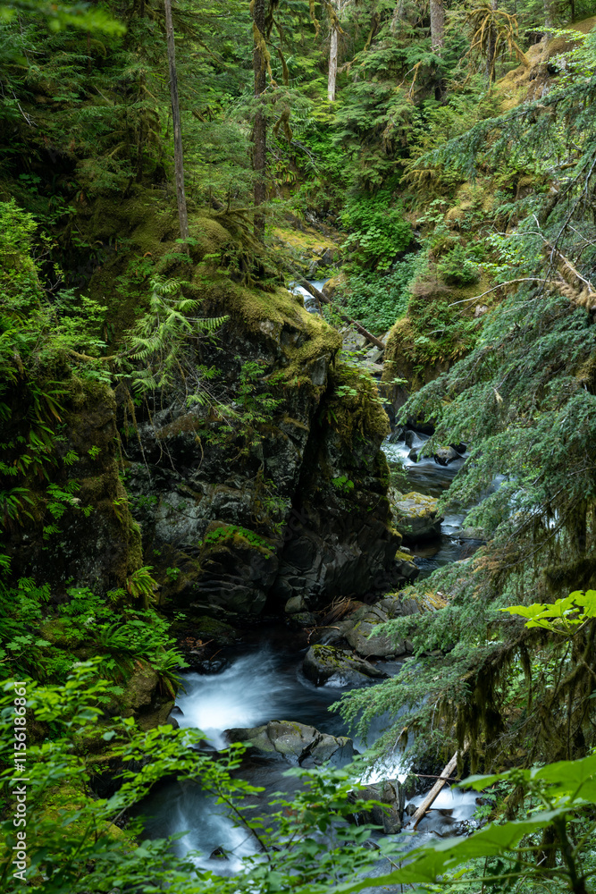 Sol Duc River Rushes Through The Narrow Canyon Beyond The Famous Falls
