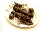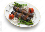 eggplant kebab, patlican kebab, Turkish cuisine isolated on white background