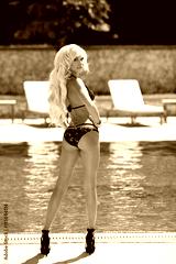 Fitness buttocks, sexy bikini model in black bikini with tanned