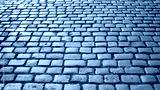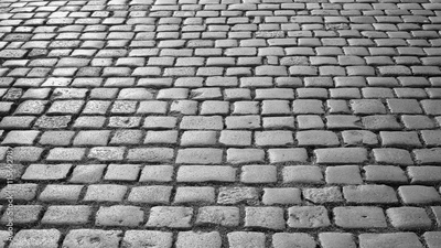Black and white photo of cobblestone pavement
