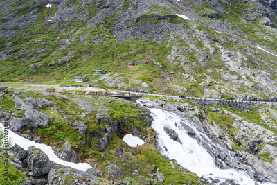 The Trollstigen road between the mountains, Norway. The most winding and dangerous road in Europe.