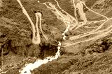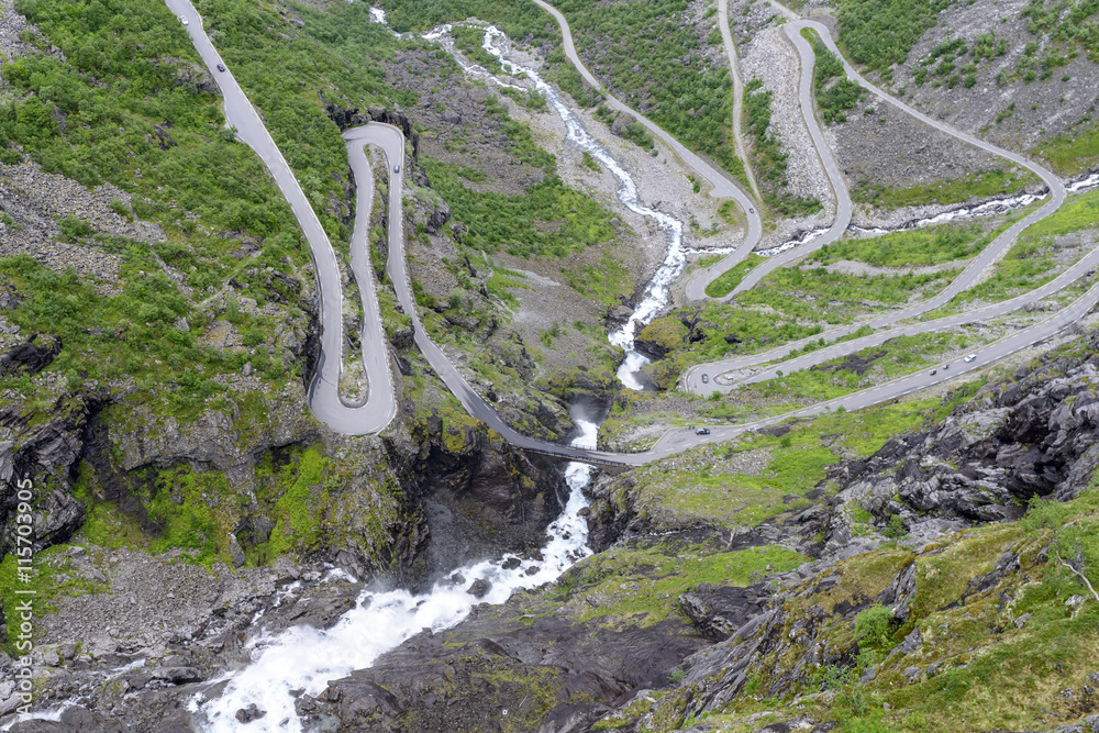 The Trollstigen road between the mountains, Norway. The most winding and dangerous road in Europe.